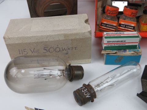 A vintage Bender 2.8:85mm cine projector within fitted stained wooden case. Together with a quantity of associated accessories.