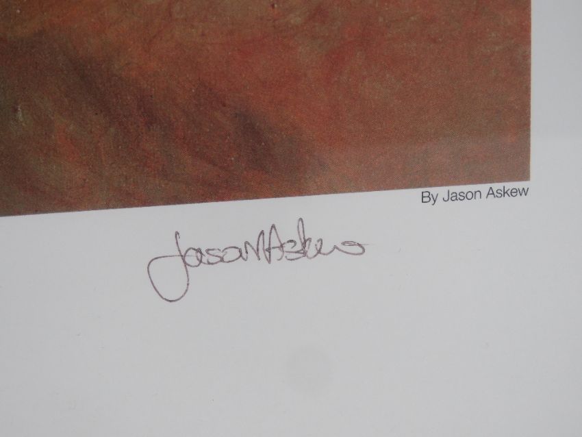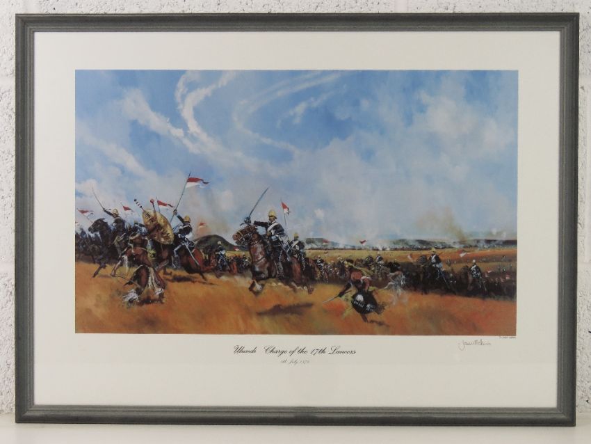 Jason Askew; Signed print, 'Charge of the 17th Lancers', framed and measuring 67.5 x 49.5cm.