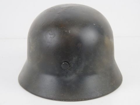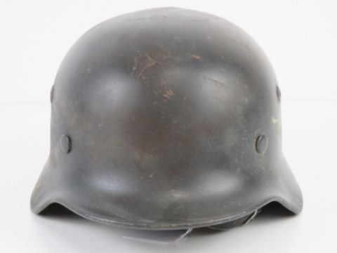 A WWII German M40 Luftwaffe helmet with liner and chin strap.