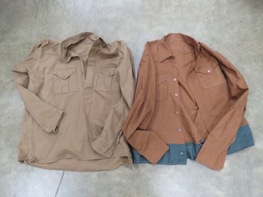 Two WWII German SA shirts, together with two black clip-on ties with NSDAP badges. Also a German water bottle cup, an SLR sling, assorted German passes, books and booklets, an empty blank box and an AK47 magazine pouch.