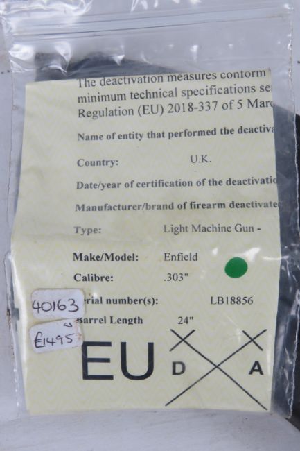 A deactivated Bren Mk3 dated WWII dated. SN LB18856. (St. No. 40163).