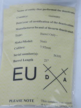 A deactivated MG53 spare barrel. SN 56181.