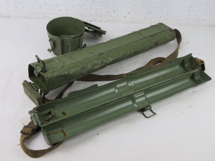 An MG42 double barrel case, an MG42 single barrel case and a MG42 drum magazine.