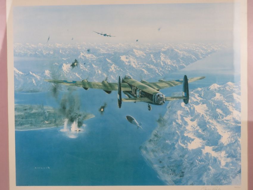 Signed limited edition print by Gerald Coulson 'The Sinking of the Tirpitz' signed in pencil lower left, No 488/500, 70 x 55cm, framed and mounted.