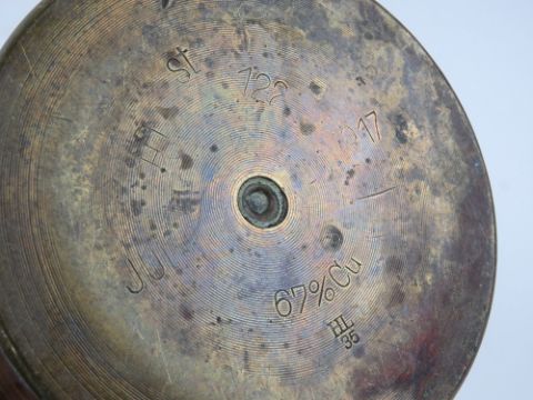 A quantity of WWI and WWII trench art inc Canadian shell case dated 1916 having a 1 franc to the base dated 1918, a WWII brass ash tray, approx. 12cm in diameter, having an East Africa coin dated 1941 to the centre and a WWI British shell case, etc.