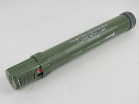 An inert L24A1 hand fired illumination flare with end cap, 35cm in length.