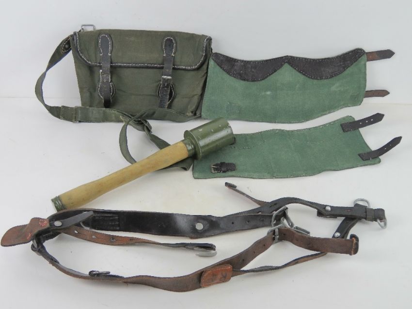 1x German 'Y' straps. 1x Replica German 'Potatoe Masher' grenade. 1x pair of German Gaiters. 1x German Bread Bag.