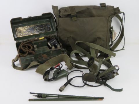 A quantity of British Military radio accessories, inc headset, four-piece antenna, mic connection and press, carry case, British telephone set "L" Mk 1/1. (handset a/f).