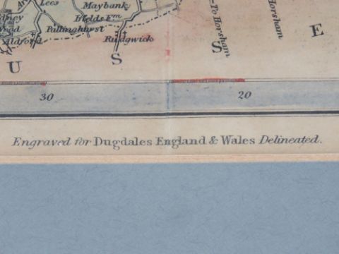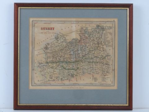 Surrey, drawn and engraved by J Archer for Dugdales England and Wales Delineated, hand coloured, sight size 24 x 19.5cm, framed and glazed.