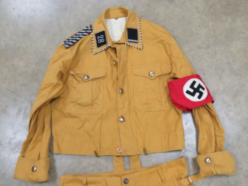 A reproduction WWII German SA Uniform, Jacket size XL, Trousers size XL.