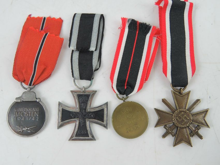 A quantity of assorted reproduction militaria; 1x German Armbands. 4x German WWII German Medals.