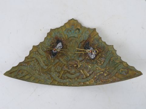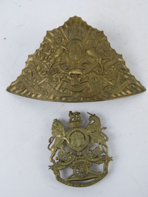 A Royal Artillery helmet plate together with a 17th Lancers helmet plate. Two items.