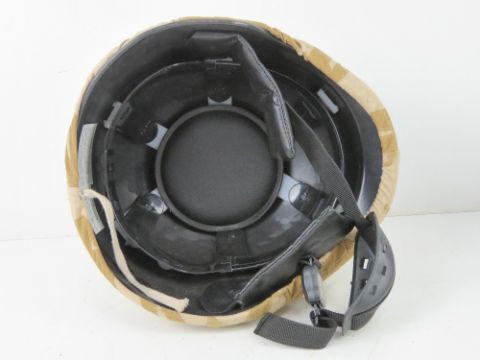 A British Cadet helmet with desert camo and another with DPM camo. Two items.