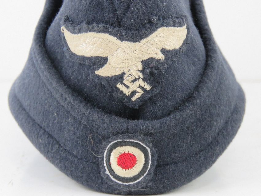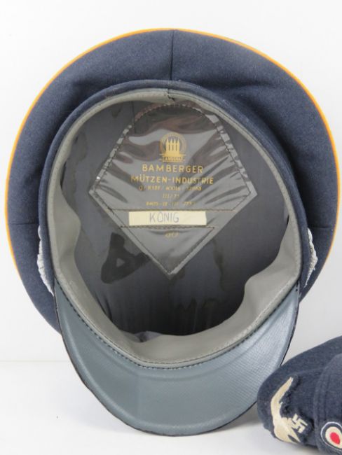 A reproduction WWII German visor cap, together with a reproduction WWII German side cap.