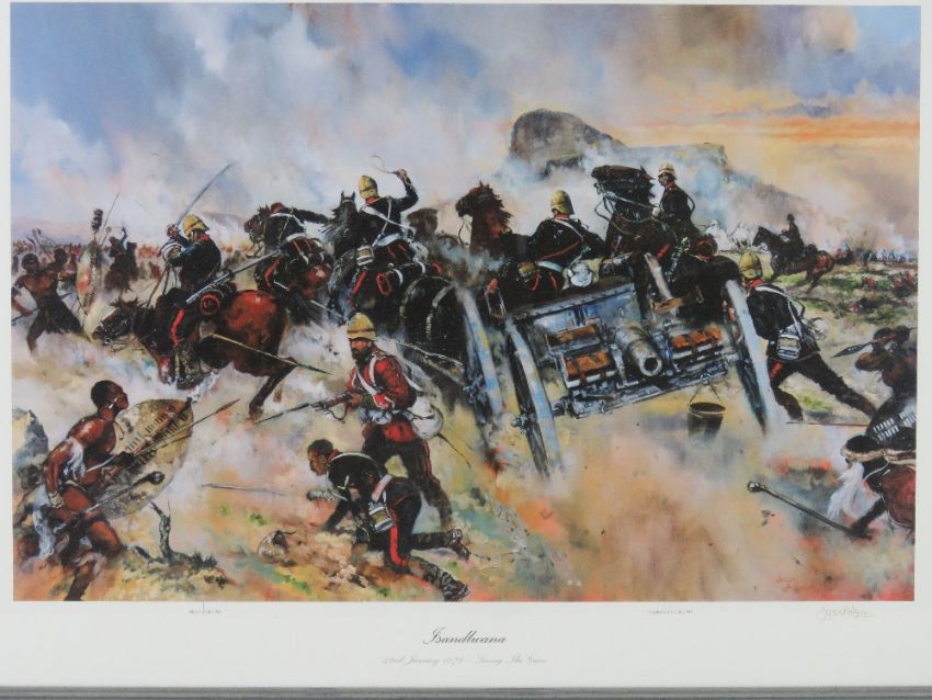 Jason Askew; Signed print, 'Saving the guns', framed and measuring 67.5 x 49.5cm.
