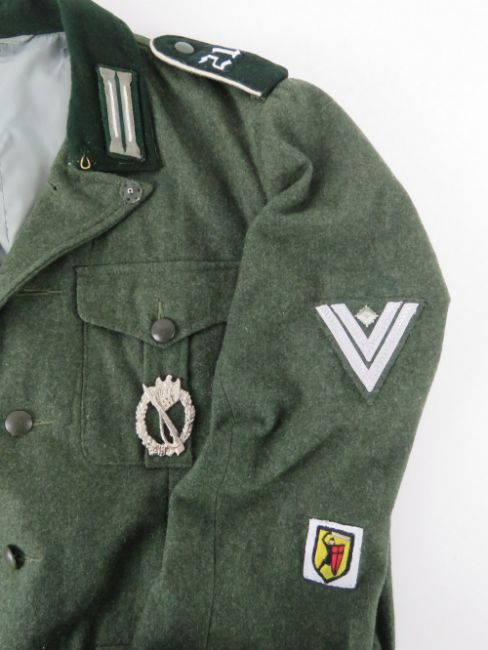 A German combat Jacket with insignia, size 44 together with a German combat shirt size 46 and trousers with braces.