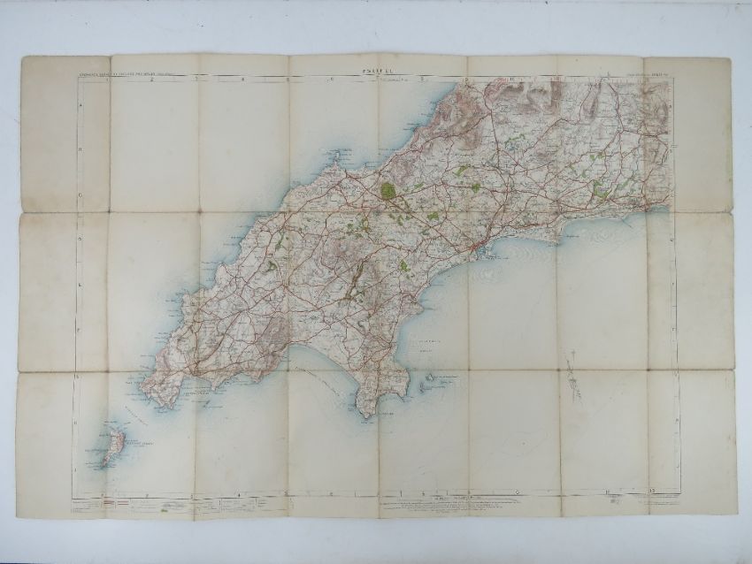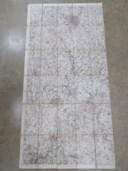 A quantity of assorted ordinance survey maps; three in twenty-one sections, being Cromer post 1912, Pwllheli post 1907, Brighton post 1911. Three maps each measuring approx 74 x 53.5cm. Together with Glasgow dated 1925 and measuring 99 x 72cm, and a part map of Birmingham. Five items.