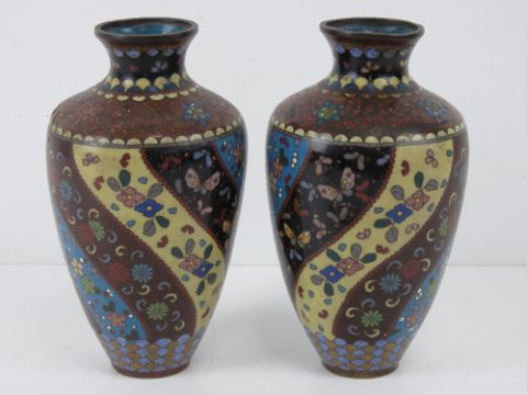 A pair of early 20thC cloisonné Canton enamel vases, a/f, each standing 19cm high.