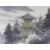 A Japanese silken thread embroidered scene of a pagoda in forest before Mount Fuji, framed and mounted, overall size 30 x 22.5cm.