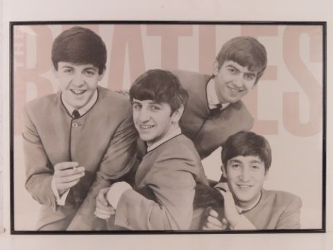 Two contemporary Beatles posters in frames, each measuring 92 x 62cm.