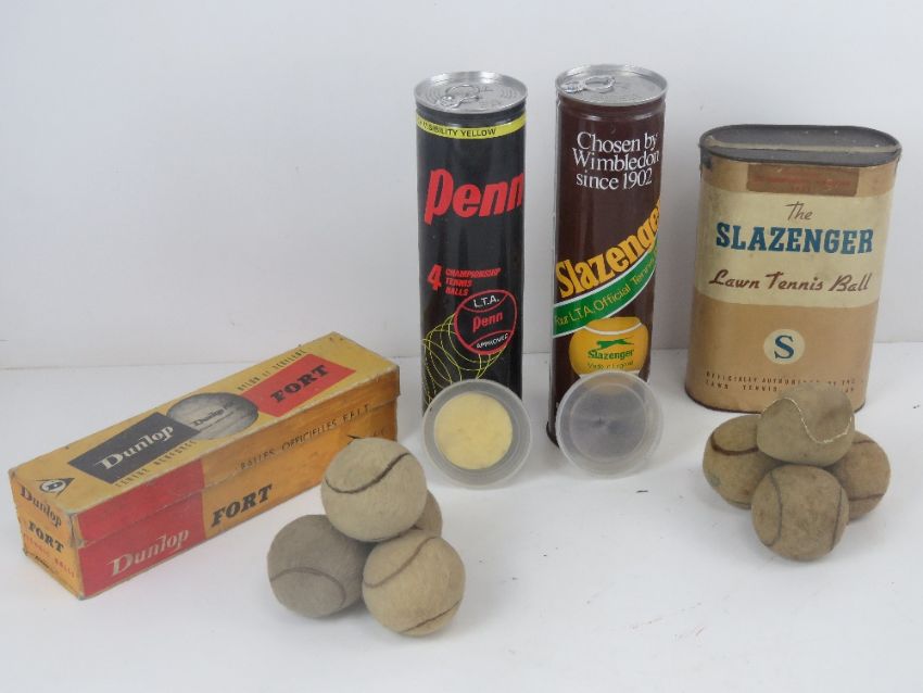 A quantity of assorted boxed vintage tennis balls including; Slazenger, Penn, Dunlop. Four items.