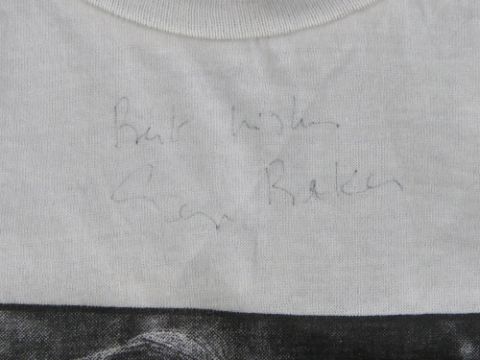 George Baker autograph; a hand signed 'The Ruth Rendell Mysteries' T-Shirt 'Best Wishes George Baker' in black pen.
