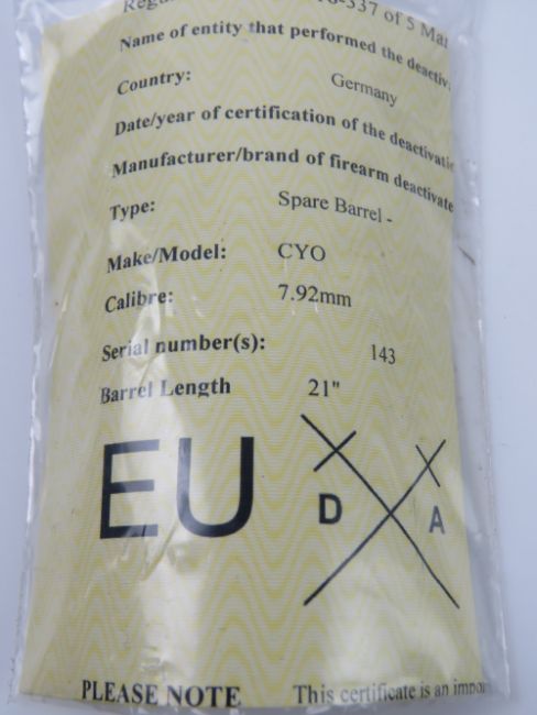 A deactivated MG42 spare barrel. SN 143.