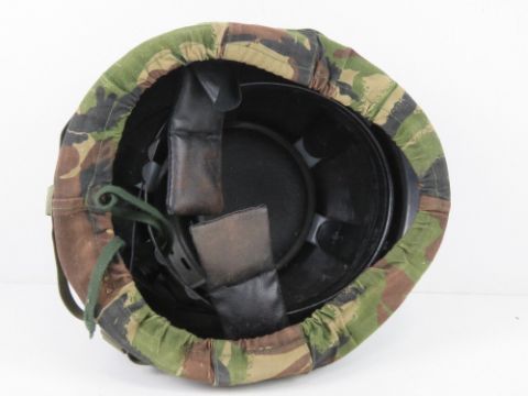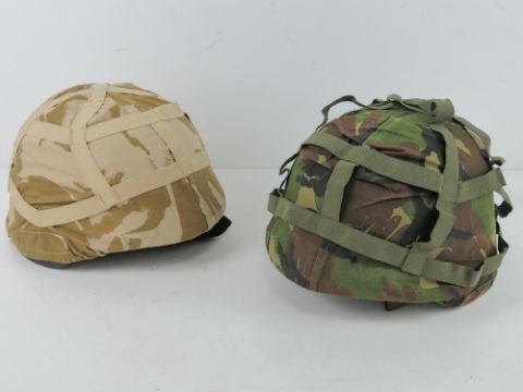 A British Cadet helmet with desert camo and another with DPM camo. Two items.