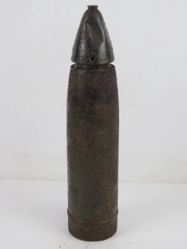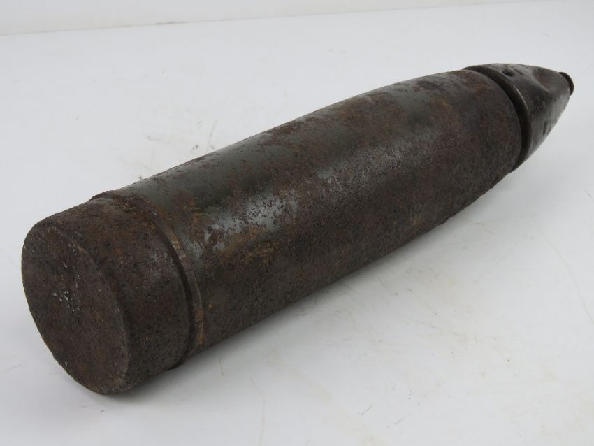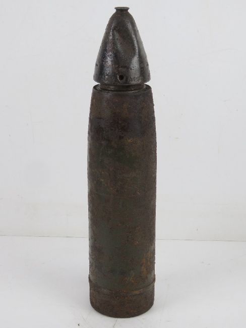A German WWII LeFH 10.5 inert round with fuse, dated 1944.