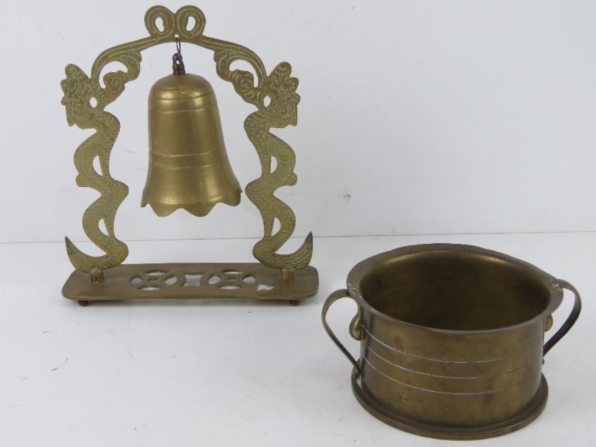 A Trench Art bell together with a Trench Art bowl.