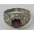 A HM silver red stone ring, pierced lattice design, hallmarked for Birmingham, size O-P.
