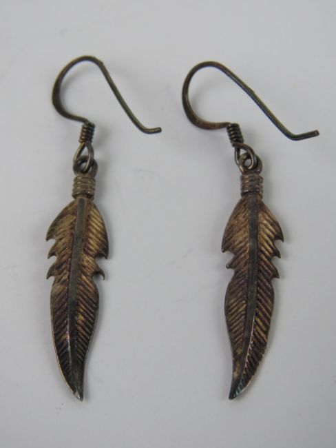 A pair of silver feather earrings, stamped 925, 4.3cm drop.