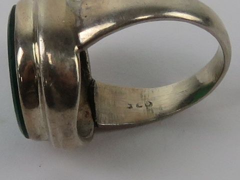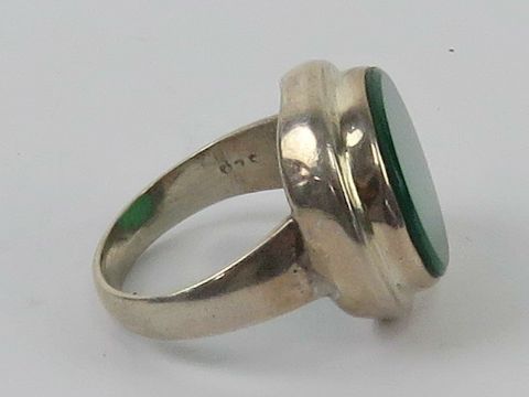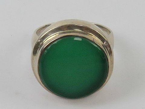 A silver and green onyx cocktail ring, circular form, stamped 925, size Q.