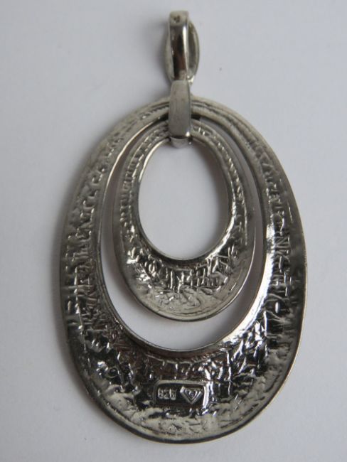 A 925 silver pendant having planished finish, 6cm in length.
