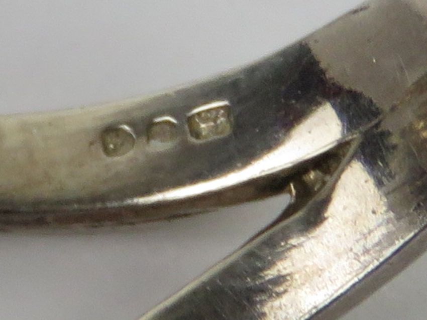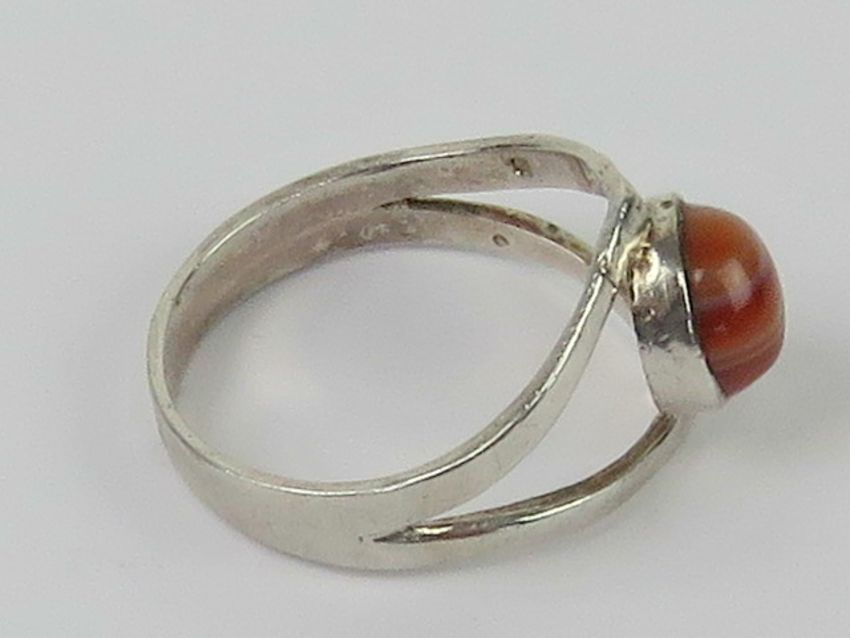 A HM silver banded carnelian ring of geometric design, hallmarked 925, size Q.