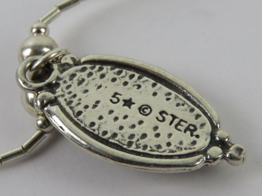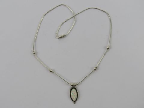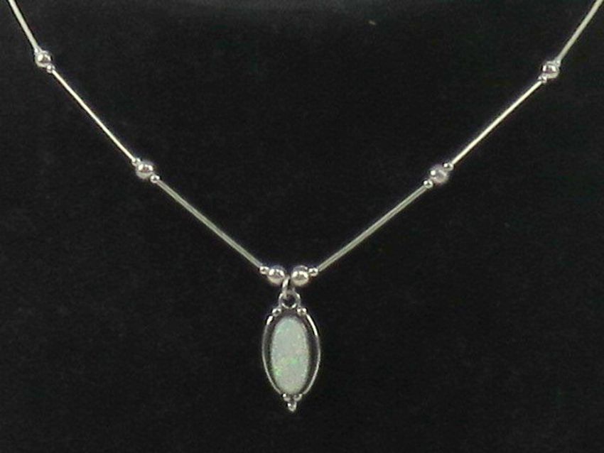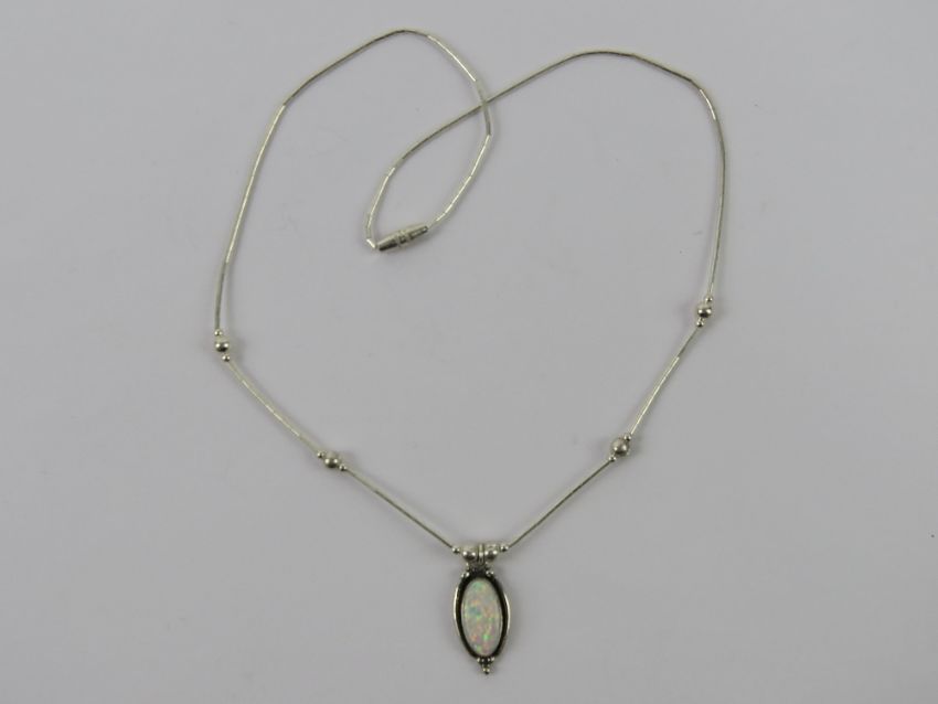A 925 silver and opal pendant on Native American style bead chain necklace, stamped 925 to pendant.