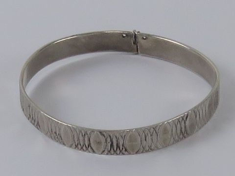 A HM silver bangle having overlapping oval pattern upon, London Jubilee hallmark upon, 5.2cm dia.