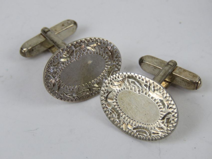 A pair of unengraved silver cufflinks in presentation box.