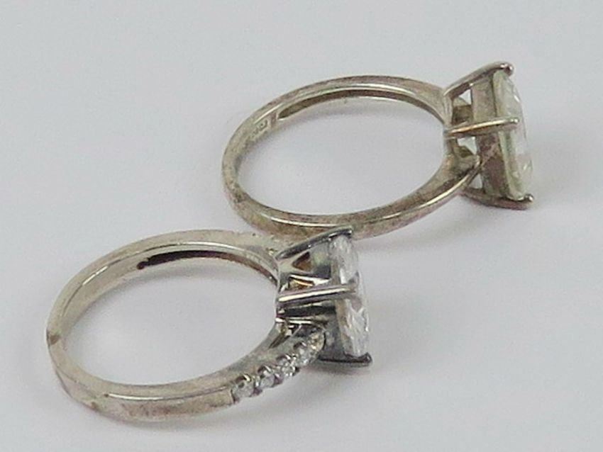 Two silver and cz stone cocktail rings, each stamped 925, sizes O-Q.