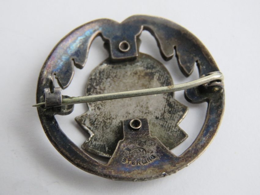 A sterling silver enamel and marcasite Royal Army Ordnance Corps sweetheart brooch.