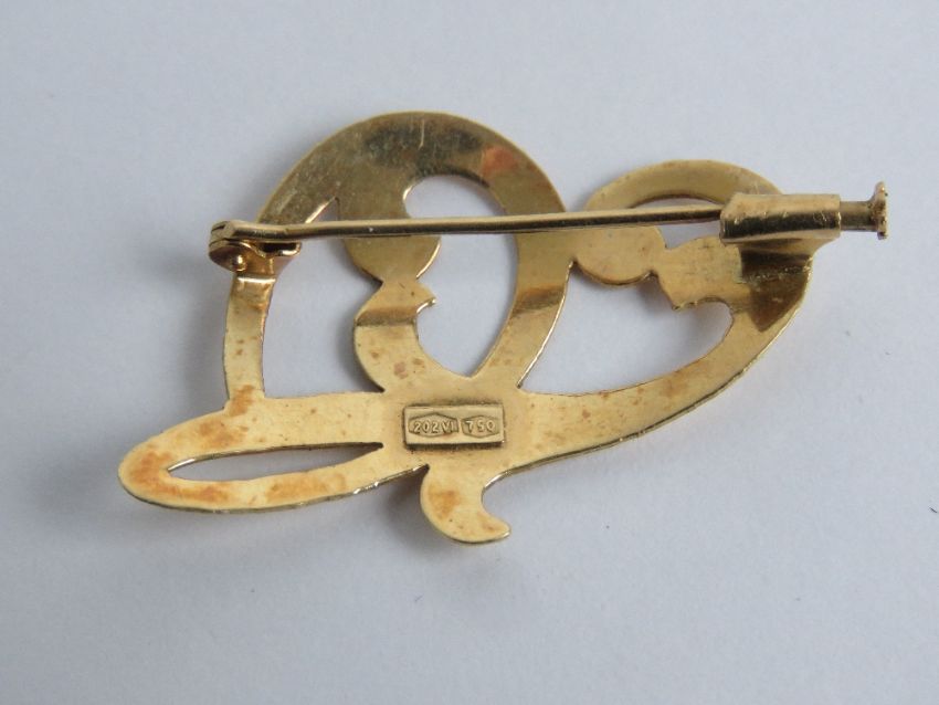 An 18ct gold brooch, European hallmark plus 750 mark, french style pin, 2g. Approx 3.5cm in length.
