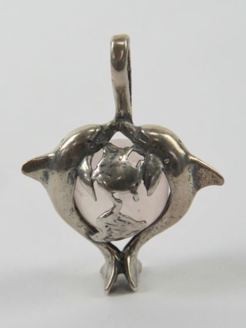 A dolphin and rose quartz pendant, 3cm in length.