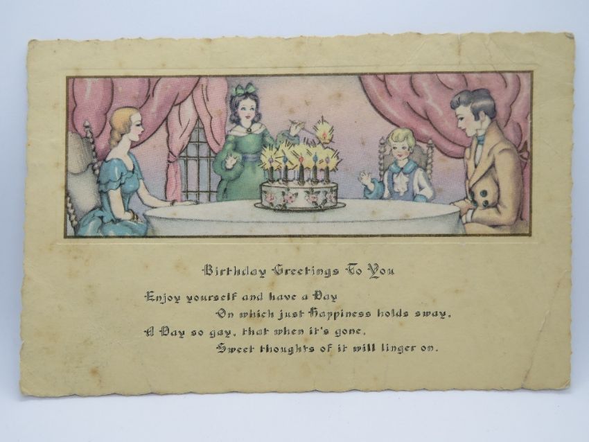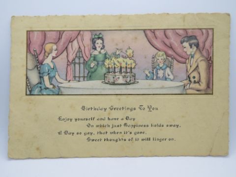 A vintage Birthday Greetings postcard, made in the U.S.A., approx 17 x 11cm.