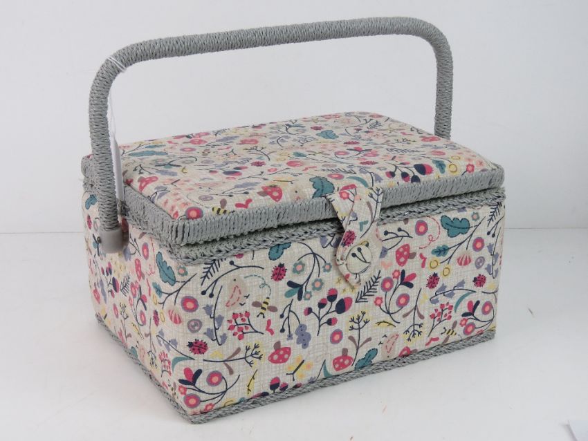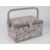A sewing box covered in floral patterned fabric