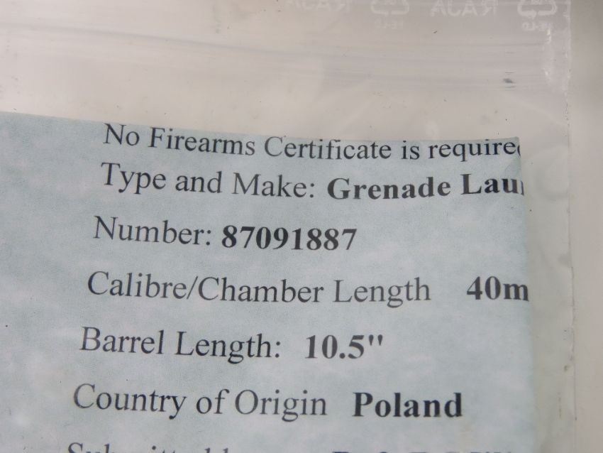 A deactivated Pallad grenade launcher with bag. With certificate.