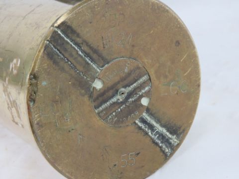 A WWI British shrapnel round with case, dated 1916.