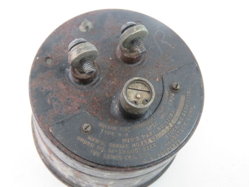 An F-86 Exhaust gas temperature EGT Indicator, as used in the US Air Force fighter jets F-86 Sabrejet, F-84 Thunderjet, F-100 Super Saber and the T-33 shooting star. Having original identity plate to the back.