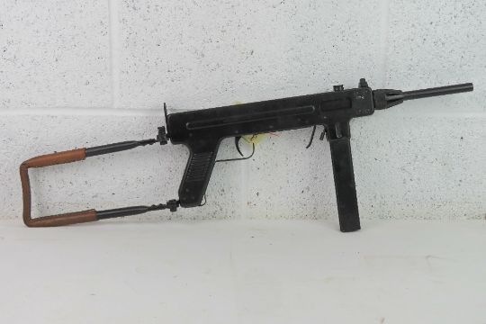 A deactivated Madsen M50 Sub Machine Gun with moving dummy metal bolt (under spring pressure, see video), trigger, and safety catch. With certificate.