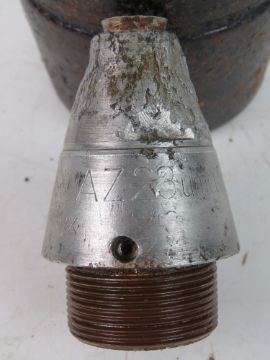 An inert WWII German Kwk40 HE Projectile with fuze, KLAZ23 umg fuze with myx makers mark and dated 43, the fuze unscrews. Approx. 35cm tall.