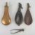 Three powder horns together with a musket ball making tool/pliers.